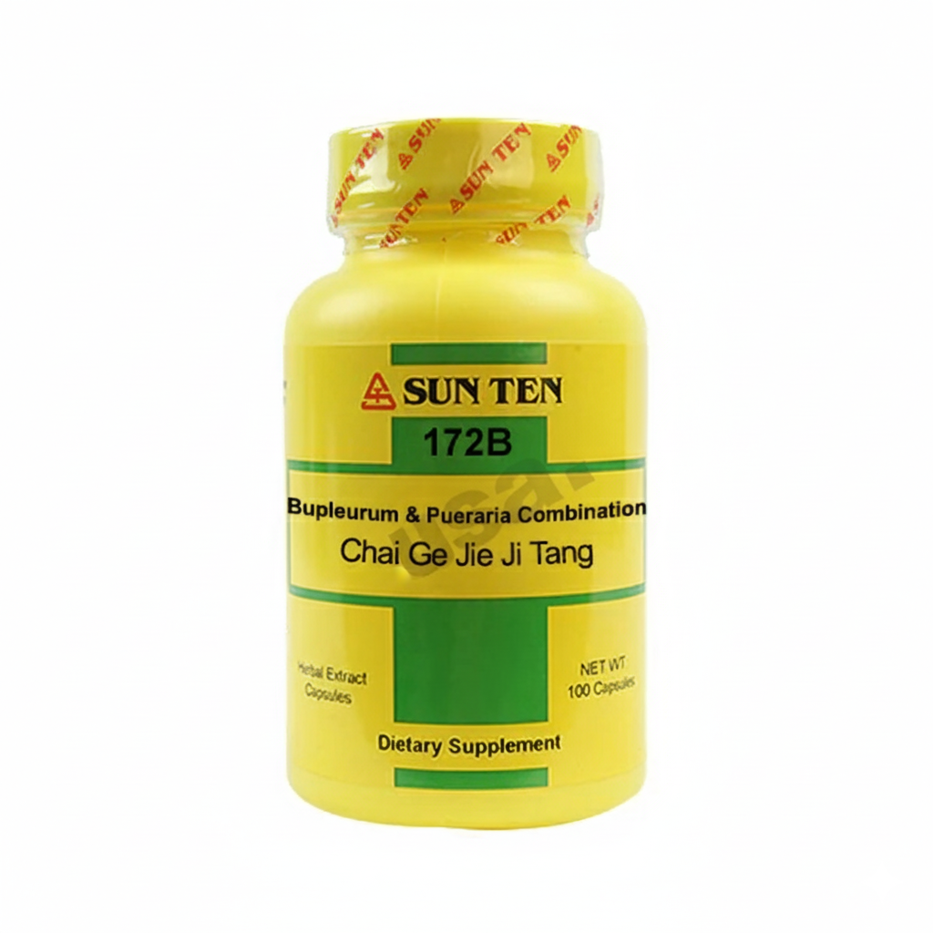 Ingredients: White peony root (bai shao), Gypsum (shi gao), Kudzu root (ge gen), Fragrant Angelica (bai zhi), Notopterygium root (qiang huo), Bupleurum root (chai hu), Platycodon root (jie geng), Scute root (huang qin), Jujube fruit (da zao), Ginger root (sheng jiang), Chinese licorice root (gan cao).