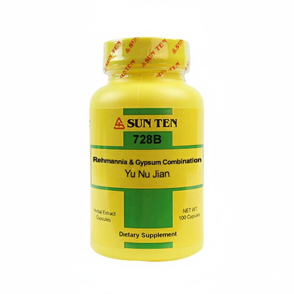 Ingredients: Gypsum Fibrosum (sheng shi gao), Radix Rehmanniae praeparata (shu di huang), Radix Ophiopogonis (mai men dong), Rhizoma Anemarrhenae (zhi mu), Radix Achyranthis bidentatae (huai niu xi).