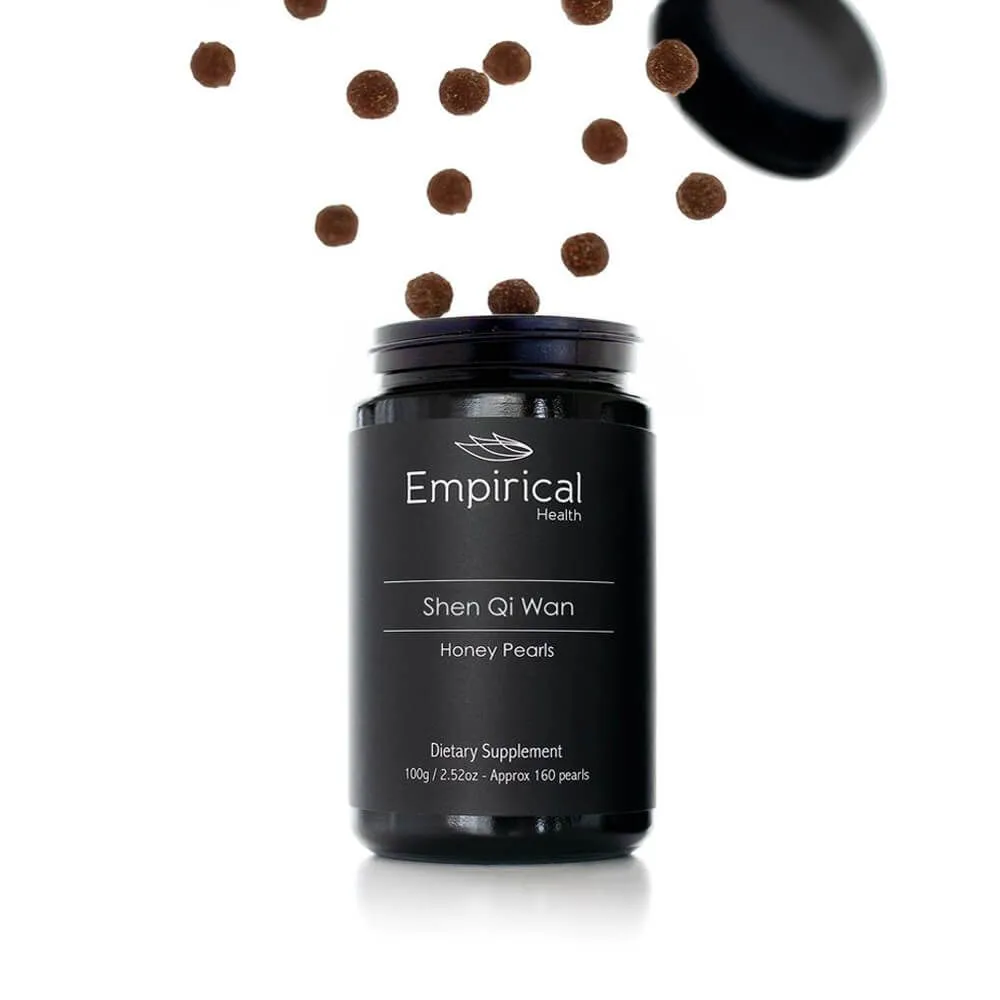 Empirical Health Shen Qi Wan Honey Pearls provide maximum digestive absorption and a slow and steady release for peak potency of this classical Chinese medicine formula. Honey pearls are based on traditional honey pills, are vegetarian, paleo-friendly, and contain no artificial colors, flavors, preservatives, yeast, eggs, wheat, gluten, nuts, dairy, or animal products. Empirical Health uses certified-organic ingredients and tests every lot of each product in independent labs for heavy metals and microbiological components to ensure purity. Shen Qi Wan Honey Pearls are available in 150 count bottles.