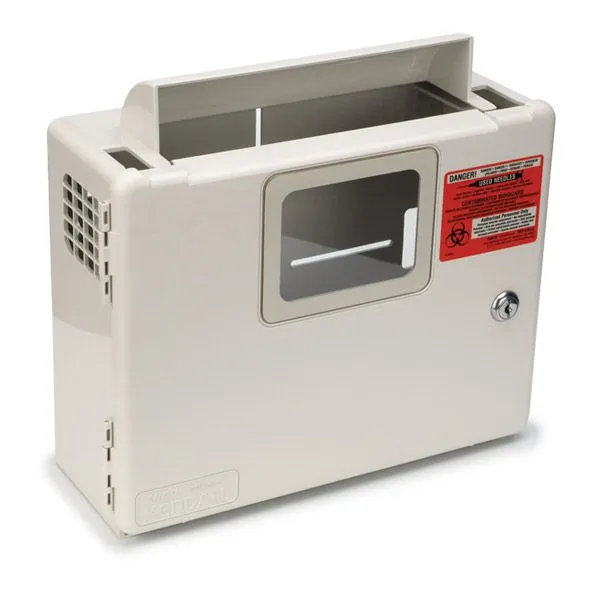 Lockable wall enclosures secure sharps containers, keep counter space clear, and help prevent access to contents in high traffic areas. These sturdy wall mounts fit all biohazard containers that are indicated to be wall mountable. Each wall mount enclosure is supplied with one key. May be used with: