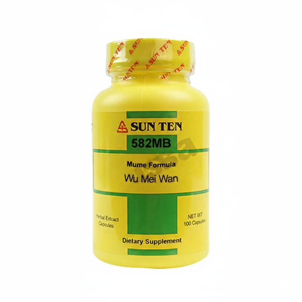 Ingredients: Mume fruit (wu mei), Sichuan pepper fruit (shan jiao),Areca seed (bing lang zi), Tang-kuei root (dang gui), Prepared aconitum tuber root (fu zi), Oriental ginseng root (ren shen), Cinnamon twig (gui zhi), Dry ginger root (gan jiang), Coptis root (huang lian), Phellodendron bark (huang bo).
