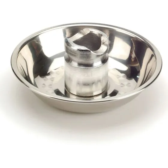 Our standard 1.2" dia moxa roll extinguisher (with top slots for holding the moxa roll) is now mounted on a wide, stainless steel 4" dia base dish. Provides greater stability and functionality and is easier to use. Dish is also be used for collecting loose ash from the burning moxa roll.